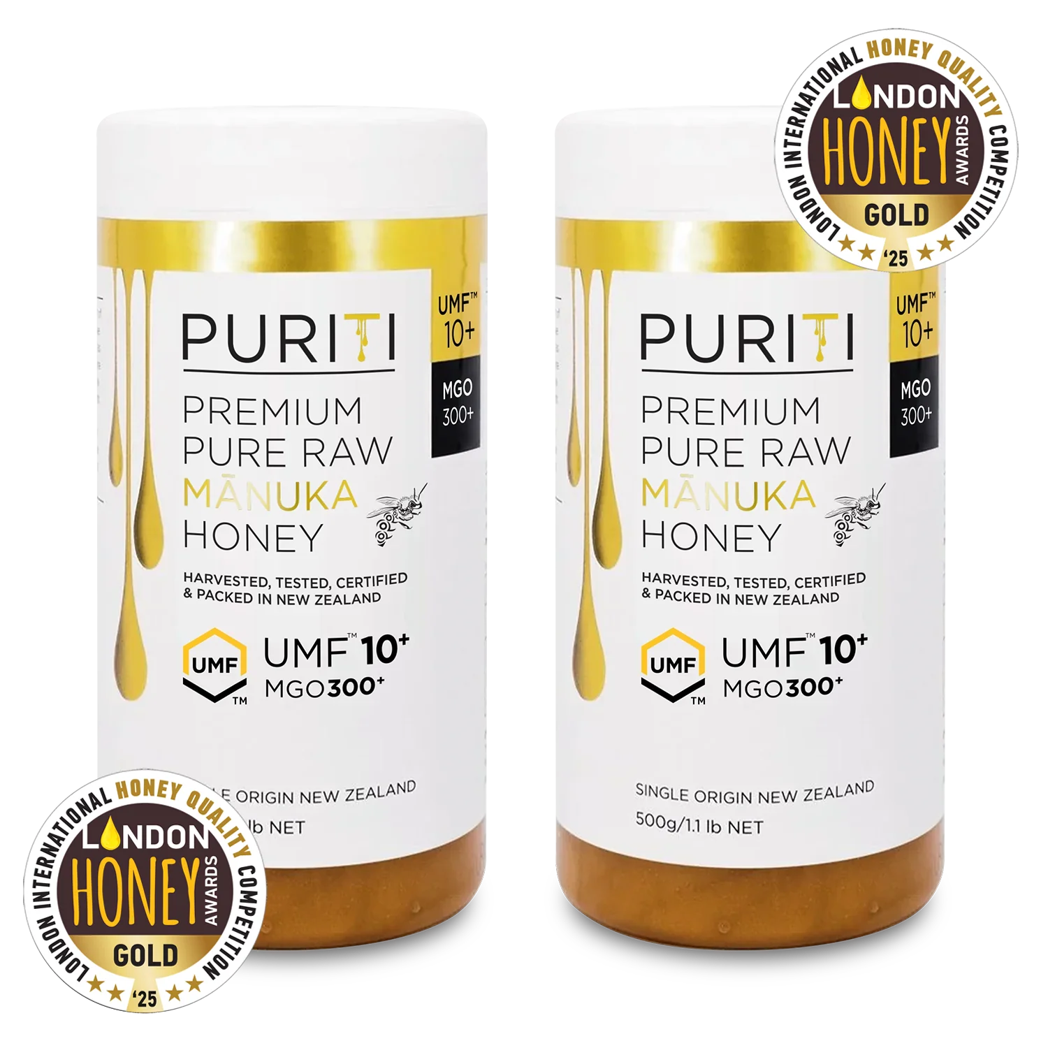 2 יחידות של דבש מאנוקה פרימיום PURITI בדרגת UMF™ 10+ MGO 300+, במשקל 500 גרם.
